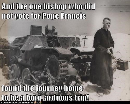 And the one bishop who did not vote for Pope Francis found the journey home to be a long, arduous trip!