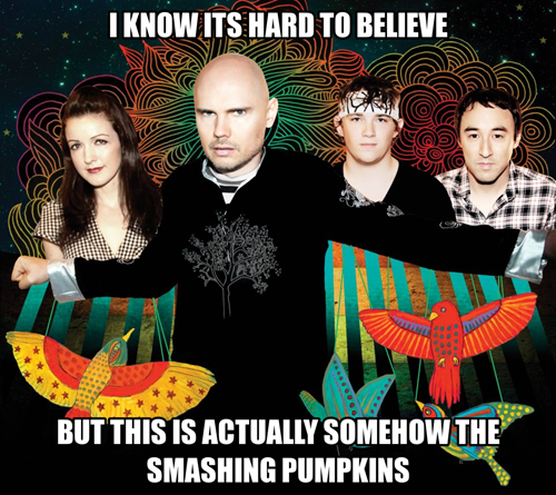 Billy Corgan, check. Girl, check. Asian guy, check. Yup, same old Smashing Pumpkins.