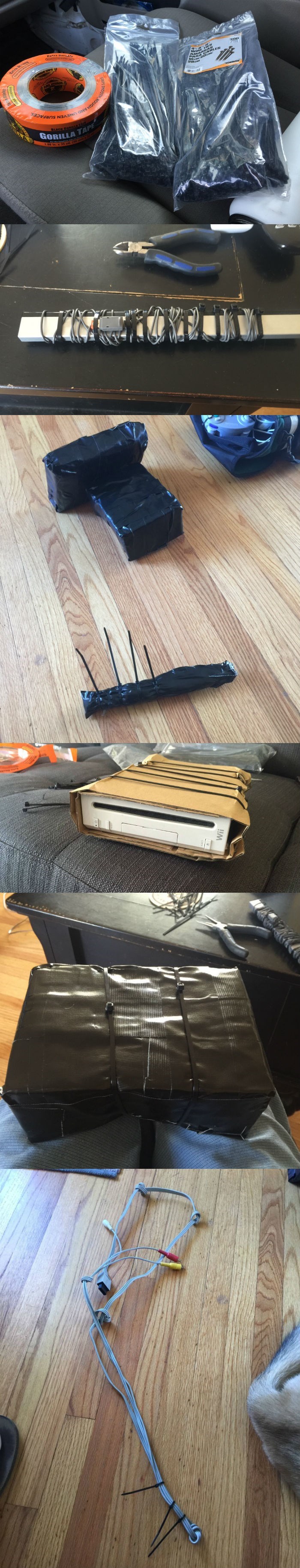 Start with 600 zip ties of various lengths and two rolls of Gorilla tape