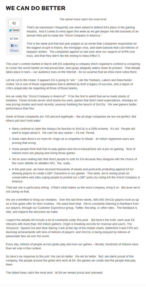 Peter Moore's Response to the "Worst Company in America" Nomination