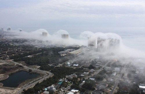 Cool air offshore was very nearly at the saturation point, with a temperature near 20ºC and a dew point of about 19.5ºC. The air at this temperature can only hold a certain amount of water vapor, and how much it can hold depends heavily on the temperature. If you add more water into the air, a cloud will form, but you can also get a cloud to form by cooling the air. Drop the temperature, and it can no long hold as much water vapor, so some of it will condense out and a cloud will form."