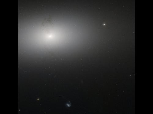 This image, taken by the NASA/ESA Hubble Space Telescope, shows the dusty structure encircling the center of the galaxy, forming a knotted ring around the galaxy's brightly glowing middle. Interestingly, this ring lies perpendicular to the plane of NGC 2768 itself, stretching up and out of the galaxy.