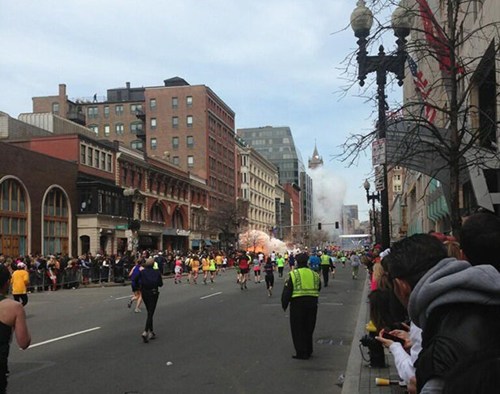 At least two explosions rocked the finish line at the Boston Marathon earlier this afternoon, killing at least two people and injuring at least a half-dozen of others (as of 4:21 pm ET). Within minutes of the explosions, disturbing pictures from the scene began circulating on Twitter and Facebook, including a Vine video showing one of the explosions as it happened. Our thoughts and prayers go out to the victims and others affected by this event. Stay tuned for more updates.