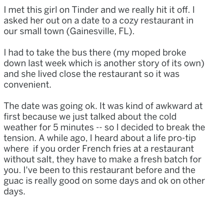 Guy On Tinder Date Learns Costly Lesson On Lying About Food Allergies To The Restaurant