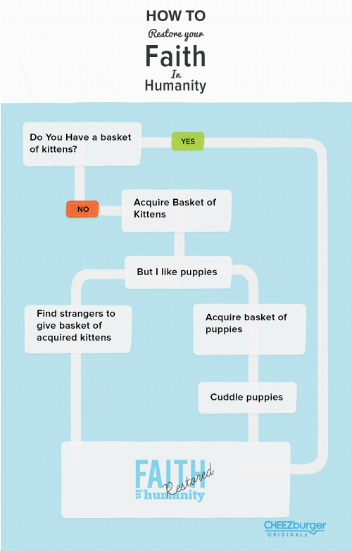 Still feeling down? Don't have access to the basket or bundle of cute animals of your choice? Maybe something else from our Restoring Faith in Humanity page will help you out!