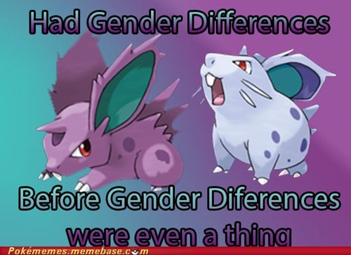 Yeah, I know technically they're completely different Pokémon, but if they were created later it would totally be a gender difference. :)