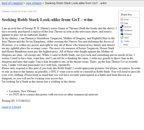 Looking for a Stark in the streets but a Wildling in the sheets ;)