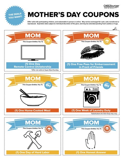 Whether you're strapped for cash, time or both, Mother's Day coupons are a great gift for any Mom this weekend!
