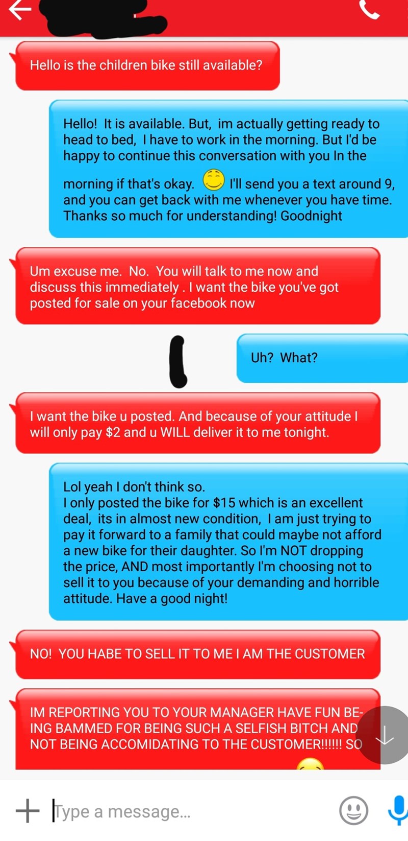 Crazy Woman Demands Bike For Sale And Then Threatens The Seller