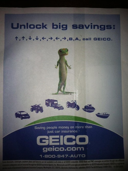 Haha! Look! It's a Video Game Cheat Code! As a Video Game Playing Youth, GEICO Gets Me!