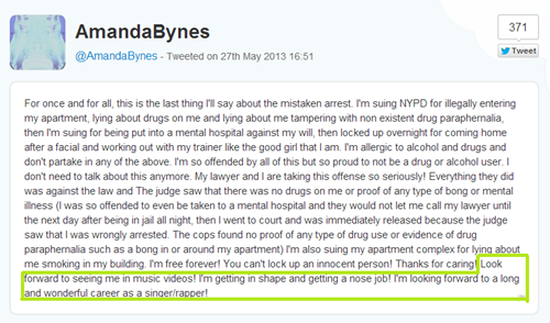 She caps off her long-winded rant against the NYPD with a declaration of her new goals in life. A long and wonderful career? Amanda,