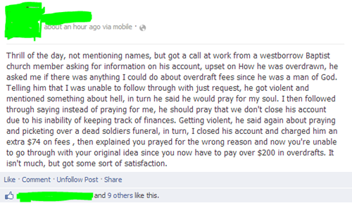 Westboro Baptist Church Member Calls Bank, Bank Associate Closes His Account