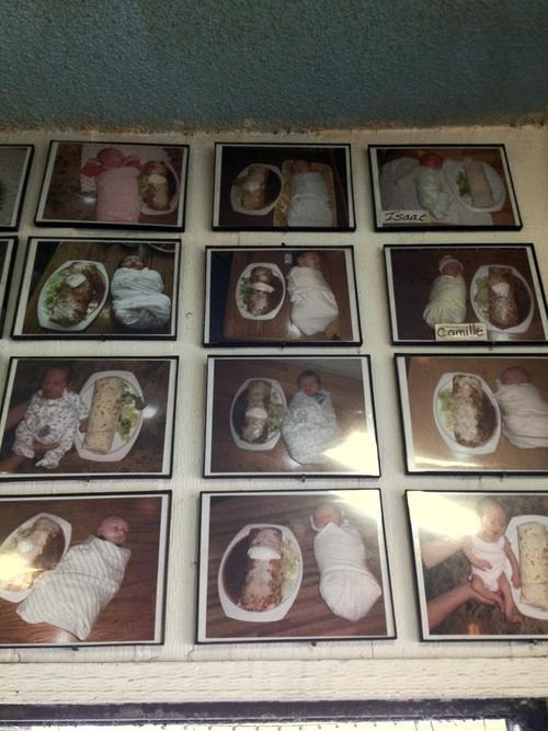 A local Mexican joint posts photos of their burritos next to newborns to prove their size.