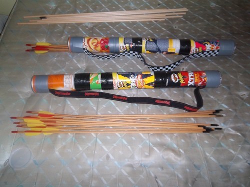 Pringles tubes + duct tape + random straps = an excellent arrow storage tube.