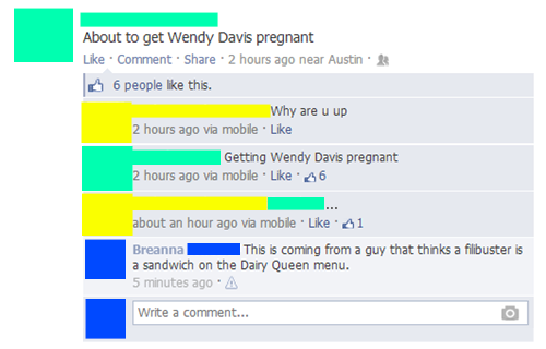 Wendy Davis Filibusters Anti-Abortion Bill in Texas, Senate Gets Ultra Mad, Bro