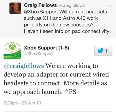 There were rumors floating around saying that all current headsets would not work (game sound would, but not voicechat) with Xbox One. This confirms there will be a way to use your current headsets. Or you could do the amazing thing and just use the Kinect trolololol.
