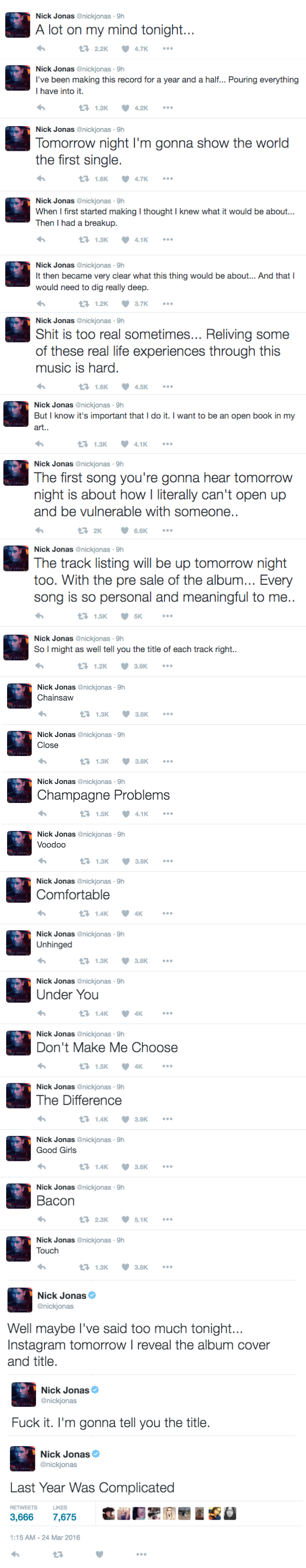Nick Jonas Tweets a One-Sided Complicated Confession and Decides to Reveal His New Album Details