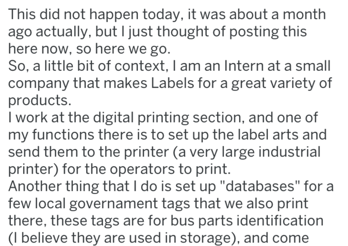 You can almost make out this employee's stress-sweat in the story, told. This story's the stuff of fever dreams. My hands get clammy just trying to picture myself in his nightmarish scenario.