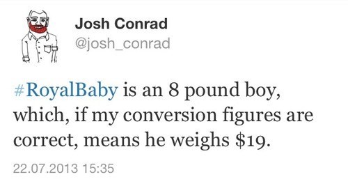 So, if Royal Baby is third in line to the throne in England, that would make him... hmm... fifth in line to the American Presidency, I think?