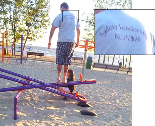This guy was at the park tonight, teaching his kids (and all the other kids who were watching) how to balance on a teeter totter like so. The irony was not lost on me - I couldn't resist taking a picture.