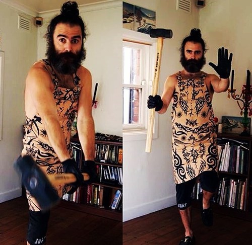 Home Construction Apron Outfit with Tribal Tattoo Pattern