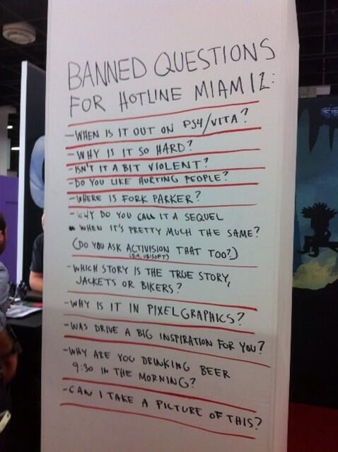 Banned Questions at the Hotline Miami 2 Booth