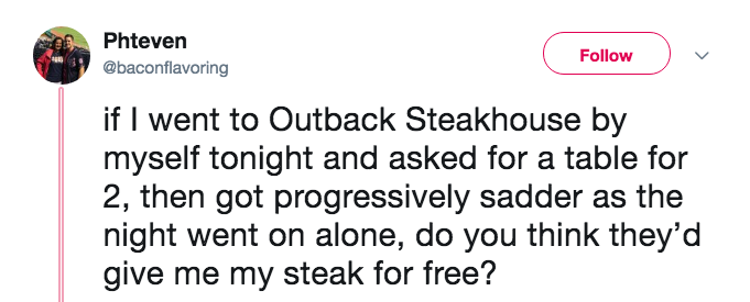 Lonely Man Live-Tweets His Valentine's Date With Himself At Outback Steakhouse