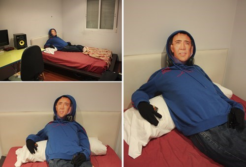 "Our roommate was out of town this weekend, so we made Nicolas Cage welcome him back home in a sexy way."