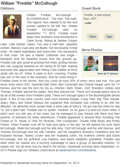 Take a Seat and Read the Obituary of the Coolest Person Ever