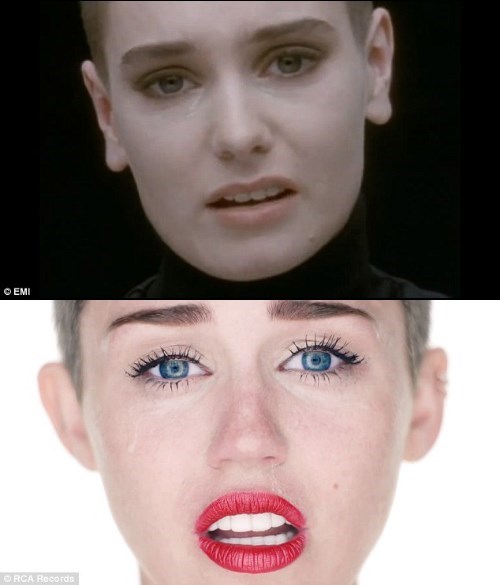 After Miley told Rolling Stone that the oft mocked video for her new single, Wrecking Ball was inspired by Sinead O'Connor's classic Nothing Compares 2 U the Irish singer-songwriter responded with Open Letter. In it she describes Miley's decision of baring all and licking construction equipment as the music industry exploiting her youth and sexuality to make money. All in all the letter is well-toned outcry, urging Miley to find herself and take the reigns of her career. All in all, I say thumbs up Sinead.