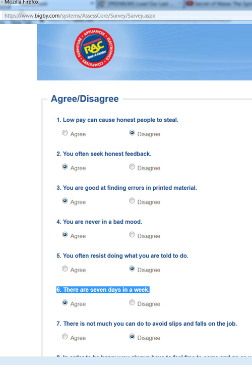 I was taking the assessment during the aplication process for Rent-A-Center, now I'm questioning how they keep employees there.