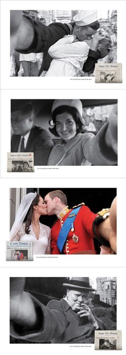 The South African Newspaper, Cape Times, cleverly took a number of famous photos and digitally modified them to appear as though they're selfies for a recent ad campaign. Each photo is accompanied with the tagline: "You can't get closer to the news."