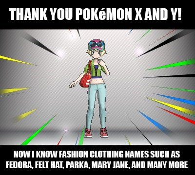 I never knew there were different types of hats, clothes, shoes, etc. before playing Pokémon X or Y, lol.