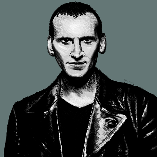 powergannon says: I painted the 9th Doctor using a brush shaped like the words "Bad Wolf"