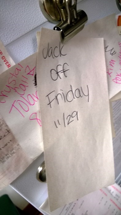 A Coworker Named (Jack) is Taking the Day (Off) on (Friday)