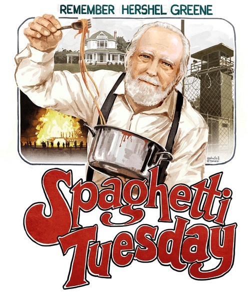To bring us spaghetti. You can buy a print or t-shirt here.