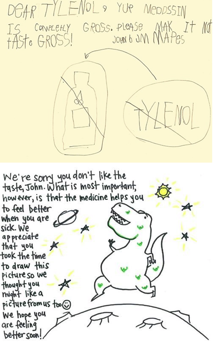 Kid Writes to Tylenol, Tylenol Writes Back