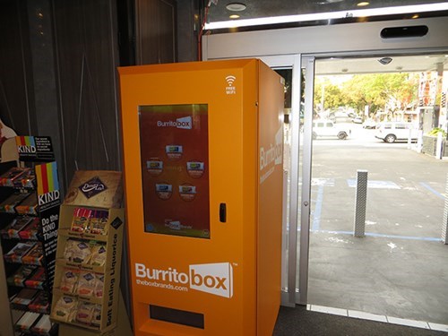 Now when you need a little sustenance on the go but want a little more than a Snickers or bag of Doritos, you can get it from the Burrito Box! This new vending machine offers a choice of five different burritos including Roasted Potato, Egg & Cheese, Chorizo Sausage Egg & Cheese, Free Range Chicken, Bean & Rice, and Shredded Beef & Cheese.