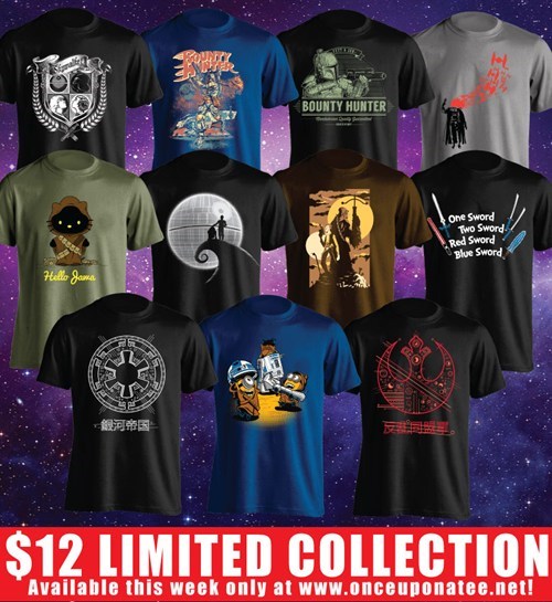 Once Upon a Tee is a start up that offers a limited collection of weekly tees (with shipping now reduced up to 60%). This week we are featuring a collection inspired by a Galaxy far, far away! Use the code "GEEKLIFE" for 5% off $20 or more and if you could continue to spread the word, we'd be eternally grateful!