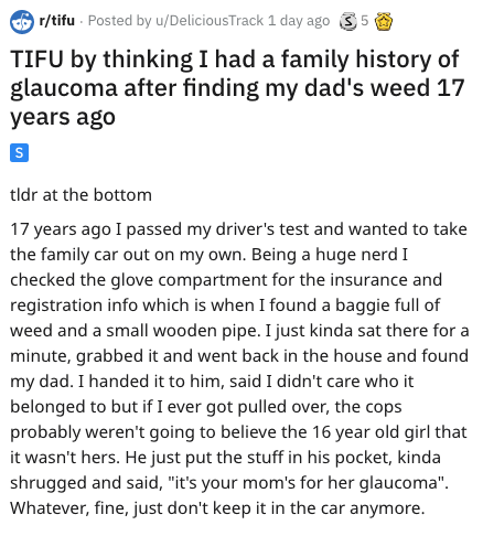 You'd think after a few years of her mom having an "eye disease", she's catch on after like, at least year 10. Apparently it just never clicked? What can we say, parents lie to their kids all the time, sometimes not even for a good reason. Here are times parents lied to their kids just for a goof.