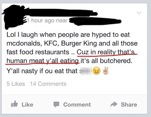 For the record, this is the dumbest in a long line of false information about fast food perpetrated by Facebook dolts.