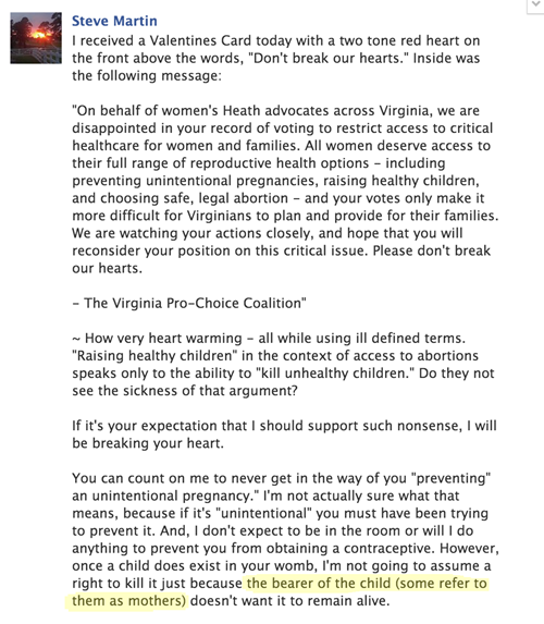 Virginia State Senator Refers to Pregnant Woman as "Bearer of the Child"