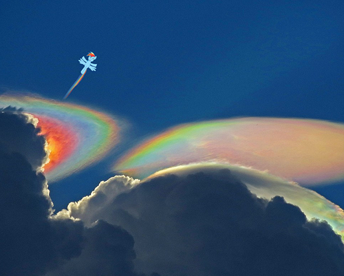 It's not a bird, it's not a plane, it's Rainbow Dash! The clouds do exist, though.
