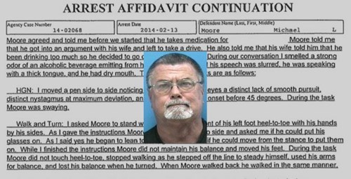 Michael Moore was arrested last month after speeding late after midnight. Moore was given a breathalyzer test and registered blood alcohol content readings of 0.104 and 0.103. The legal limit in Florida is 0.08.