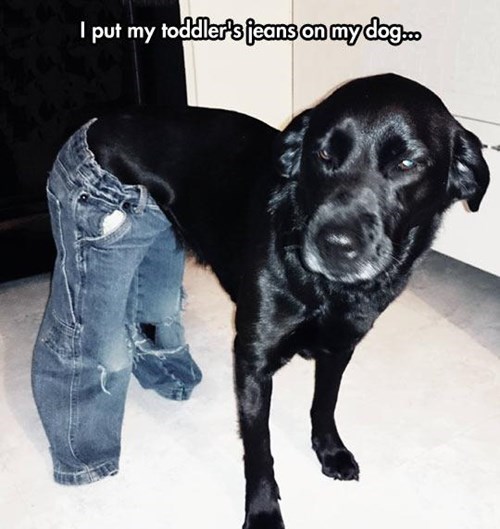 The Pants-less Toddler Loves This...the Dog, Not so Much