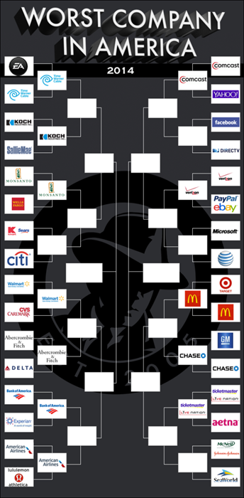 It's time for Consumerist's annual Worst Company In America competition, and two Golden Poo winner EA has been knocked out in the first round. My money's on SeaWorld to win it this year; I saw Blackfish.