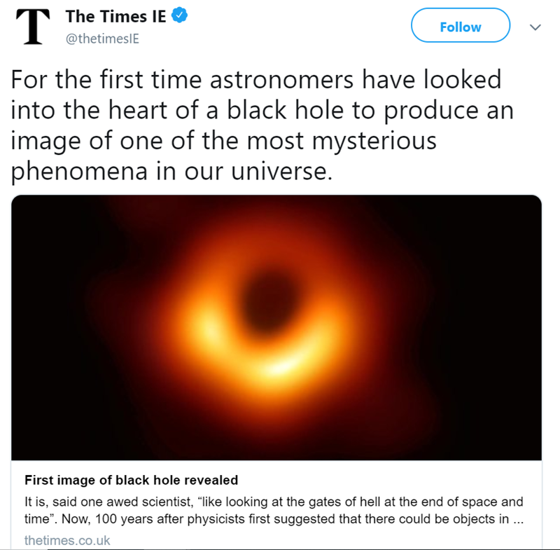 Scientists Reveal First Image of a 'Supermassive' Black Hole And People On Twitter Are Responding