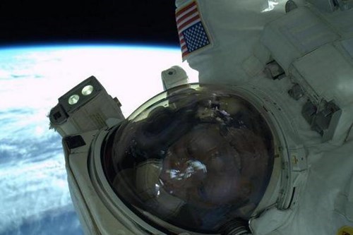 "The space suit makes it very difficult to get a good selfie. I tried several today," Mastracchio said of the photo.