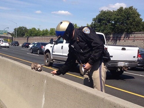California Highway Patrol officer Alex Edmon received a call that there was a dog in need of rescuing and he leapt into action! Head to People Pets to get the full story!