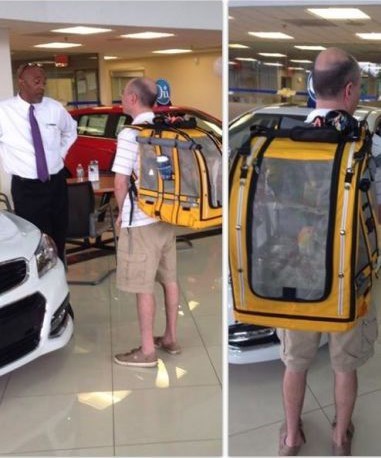 How Else is He Supposed to Tote His Bird Around While Car Shopping?
